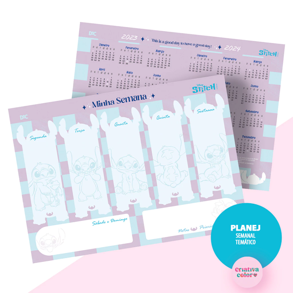 O Bloco de Anotações Semanal Stitch é perfeito para organizar a rotina de forma prática e visual. Ele conta com calendário semanal para planejamento, além de folhas mais espessas que evitam que a tinta de canetas esferográficas ou hidrográficas ultrapasse para o verso. Ideal tanto para quem já é organizado quanto para quem está em busca de mais equilíbrio no dia a dia.