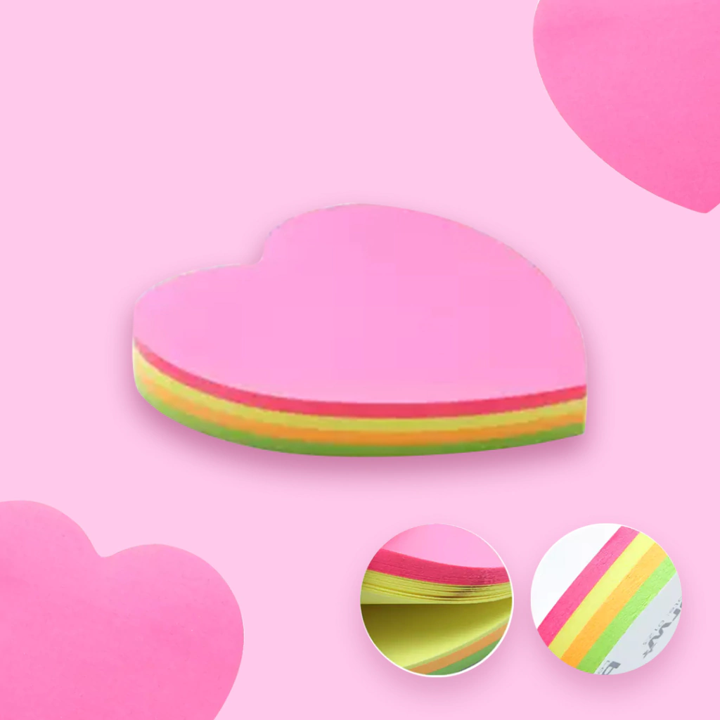 Bloco Autocolante Fofo Coração Neon 100 Folhas Divididas em Cores Neon.