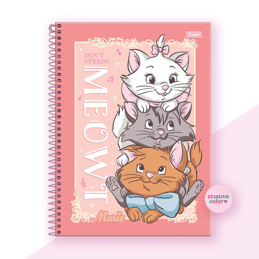 O caderno universitário capa dura Marie traz a gatinha mais querida da Disney em ilustrações elegantes que remetem ao charme parisiense, combinando delicadeza e personalidade para o dia a dia.
