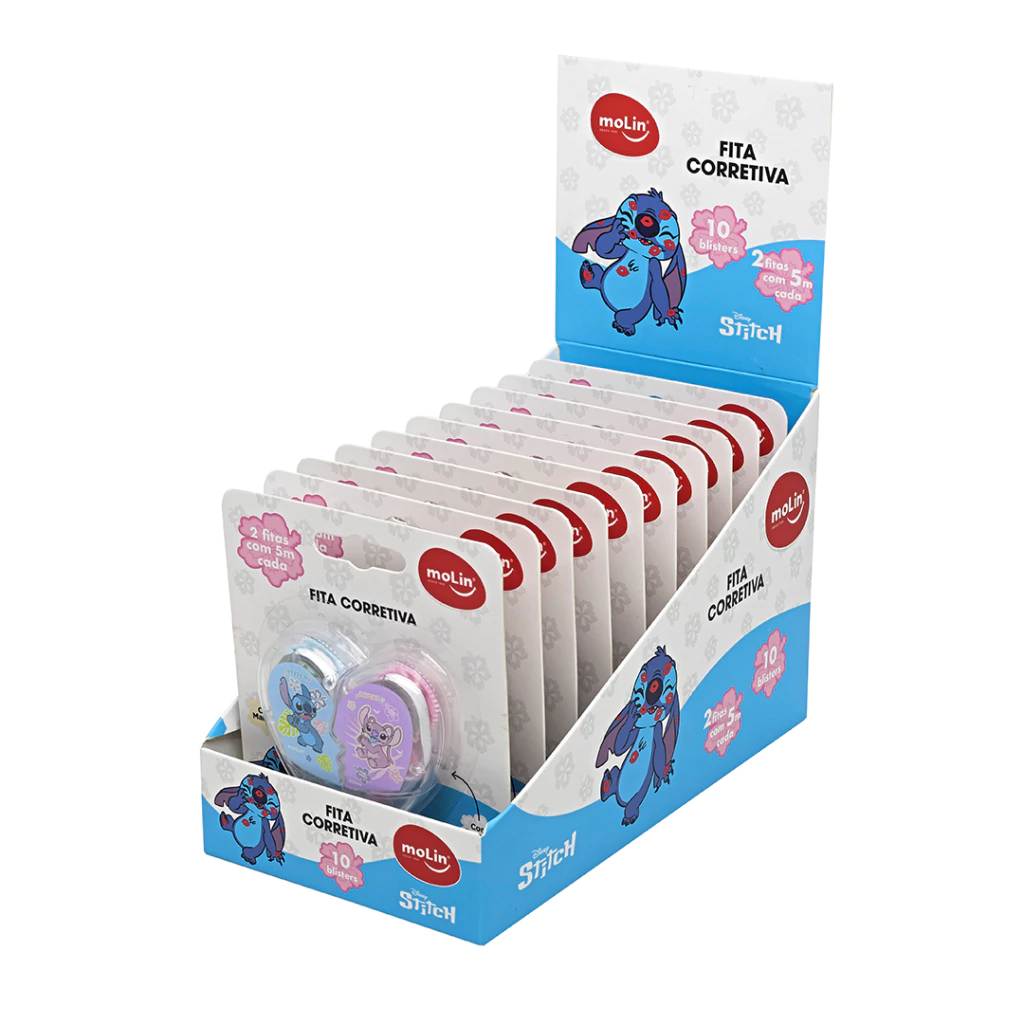 O Kit de Fitas Corretivas Stitch e Angel da Molin une praticidade e estilo em um só produto. Com design exclusivo dos personagens Stitch e Angel, o conjunto acompanha duas unidades nas cores marfim e branca. Ideal para correções rápidas e limpas, a aplicação é seca, permitindo escrever imediatamente após o uso. Perfeito para uso escolar, universitário ou no escritório.