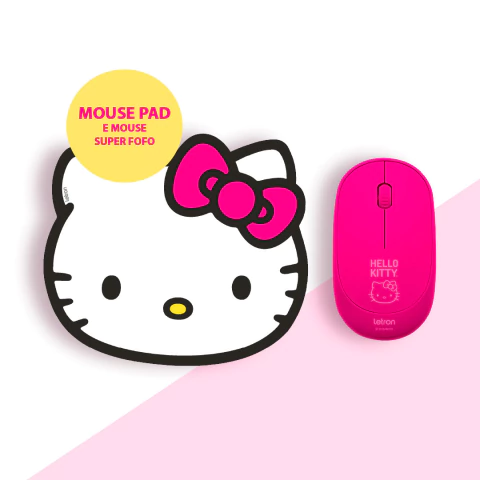 O Kit Mouse e Mouse Pad Hello Kitty Letron é perfeito para quem quer unir praticidade e estilo na hora de trabalhar ou estudar.